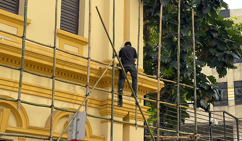 Bamboo scaffolding is a traditional construction technique integral to Macauโs cityscape, utilizing bamboo poles tied with intricate knots to create strong, flexible structures for various uses, including temporary scaffolds for building support. Widely seen across Asian cities, particularly in southern China, Hong Kong, and Macau, this craft allows for the construction of buildings of all sizes and styles, from small houses to skyscrapers, due to bambooโs availability. The method is known for its quick assembly and lightness, making it vital to Macauโs construction industry.