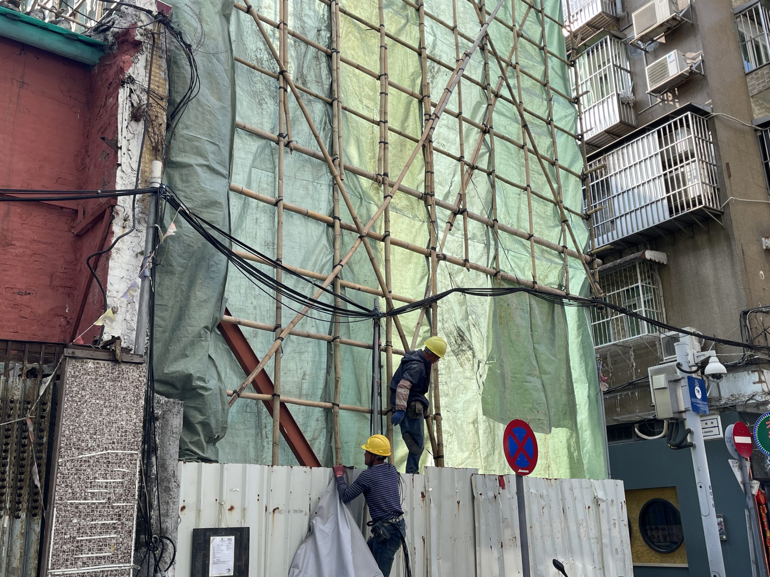 Bamboo scaffolding is a traditional construction technique integral to Macau’s cityscape, utilizing bamboo poles tied with intricate knots to create strong, flexible structures for various uses, including temporary scaffolds for building support. Widely seen across Asian cities, particularly in southern China, Hong Kong, and Macau, this craft allows for the construction of buildings of all sizes and styles, from small houses to skyscrapers, due to bamboo’s availability. The method is known for its quick assembly and lightness, making it vital to Macau’s construction industry.