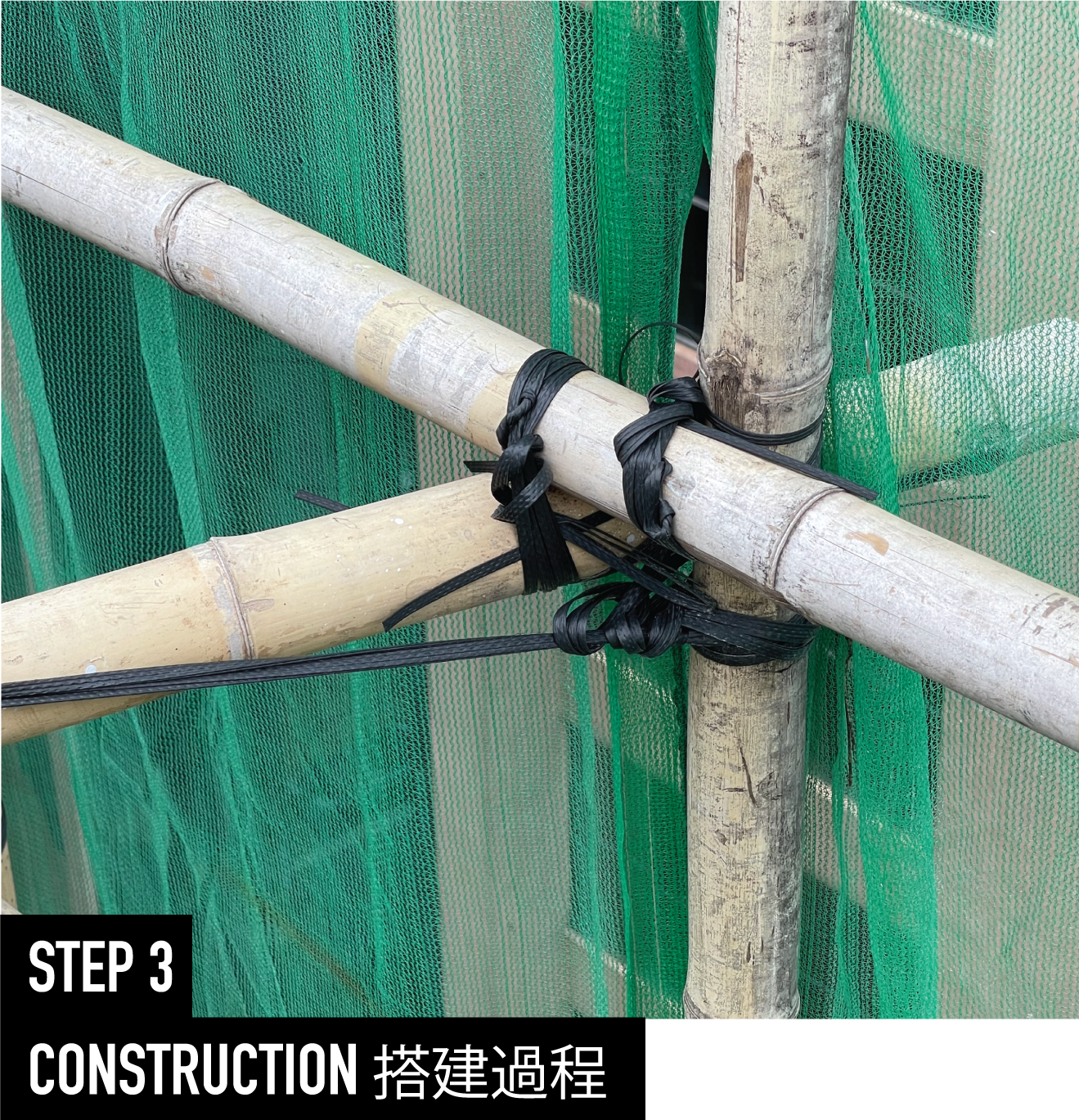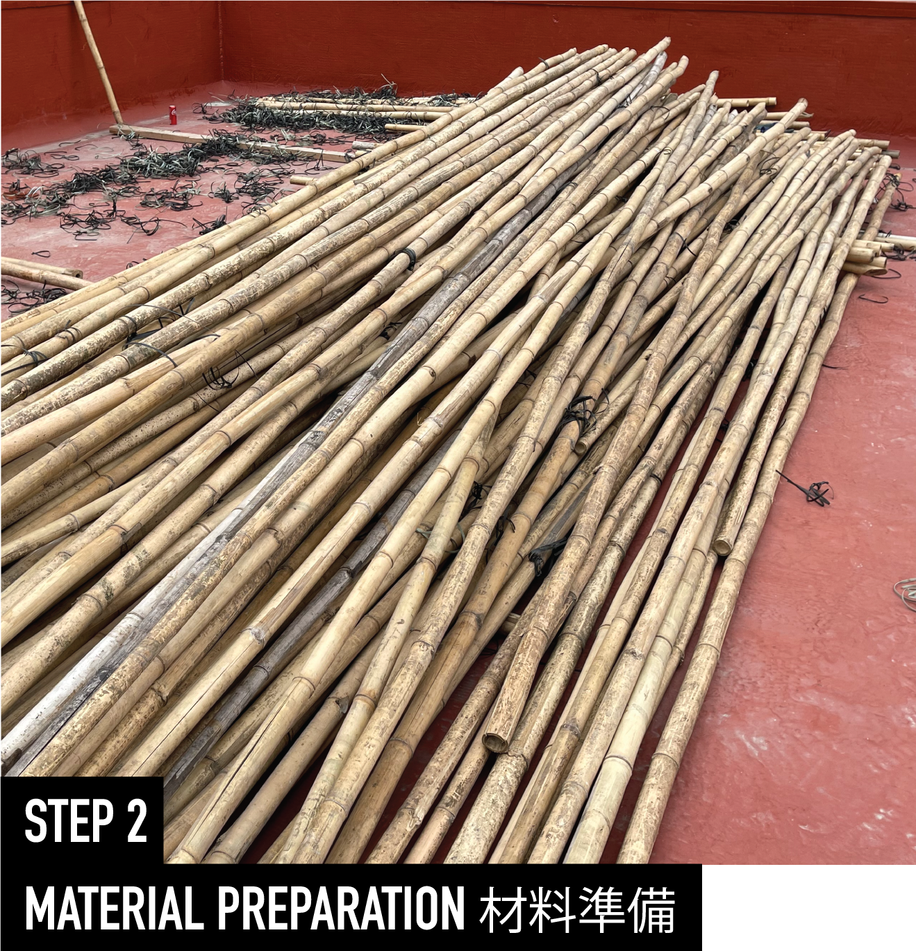 Using Moso bamboo, which is air-dried and cut to length, with modern additions of nylon strips for binding and canvas or nylon mesh for coverings.