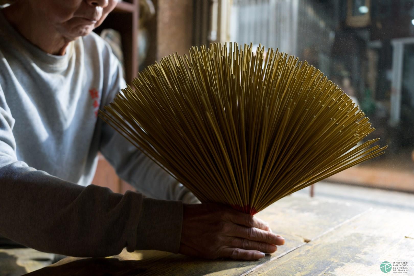 Incense sticks are aromatic tools that are mainly used for religious ceremonies. Originating from ancient Chinese traditions, they continue to hold ceremonial importance. In Macau, incense stick crafting is a cherished artisanal practice, deeply rooted in the region’s culture. These sticks are not only used in religious rituals but also embody Macau’s complex cultural identity and history, reflecting the area’s spiritual life and past economic reliance on local craftsmanship.