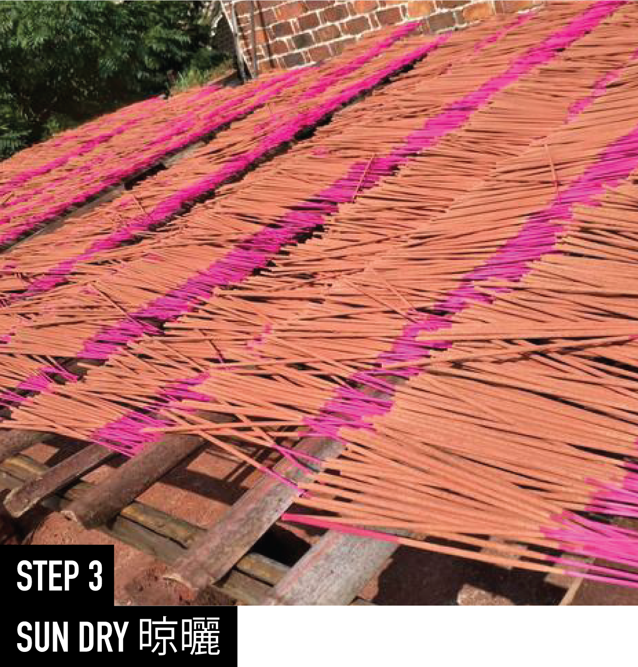 The incense sticks will then be arranged in an open space to dry and will be ready for packaging.