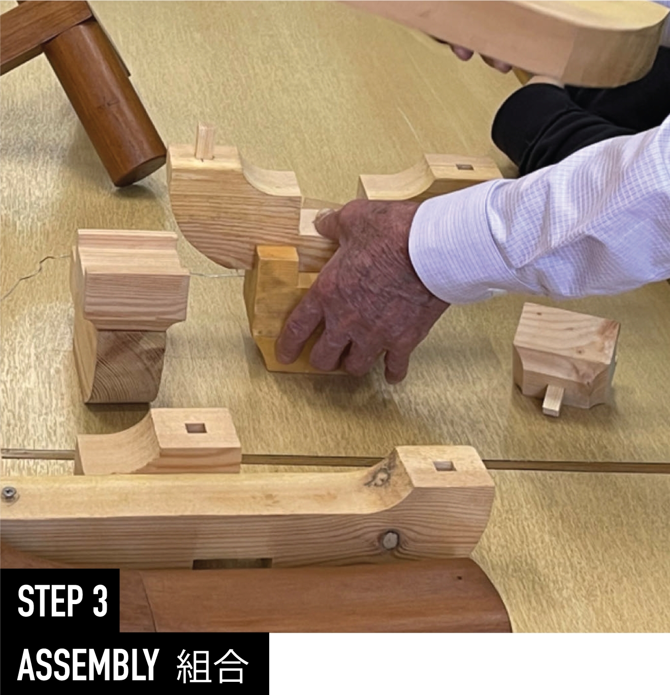 Carefully join the components, ensuring a strong and visually harmonious structure with well-integrated joints.